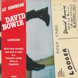 David Bowie: Lodger (RCA PL 13254; France 05/1979) Format: LP Release notes: FOC, OBI, insert Tracks: Fantastic Voyage / African Nightflight / Move on / Yassassin / Red Sails // D.J. / Look Back in Anger / Boys Keep Swinging / Repetition / Red Money Other notes: recorded at Mountain Studios, Montreux, Switzerland, 09/1978, and Record Plant Studios, New York, 03/1979 Collector's notes: There are few major cover variations for the Lodger album. The French one is such a variation: early copies had an OBI similar to those of Japanese LPs, which was very unusual for a French release. |