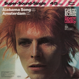 David Bowie: Alabama Song (RCA PB 9510; Germany 02/1980) Format: 7" Release notes: PS Tracks: Alabama Song* // Space Oddity** Other notes: *studio recording, Good Earth Studios, London, 02/07/1978; **re-recorded version for Kenny Everett's New Year's Eve Show, 12/1979 Collector's notes: There are also re-pressings with black labels. |