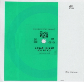 David Bowie: Song for Bob Dylan (Budkon 9769; Russia 199?) Format: 5" flexi Release notes: mono, clear flexi, 1-sided, mis-pressing with wrong track, wraparound PS Tracks: Song for Bob Dylan (edited version) Collector's notes: According to the cover and the label, this one should play Panic in Detroit, but it's Song for Bob Dylan. The funny thing is that this was the second time that Song for Bob Dylan appeared on a mis-pressed record: in 1983 it had accidentally replaced Queen Bitch on some copies of the Rebel Rebel single from the Lifetimes series. |